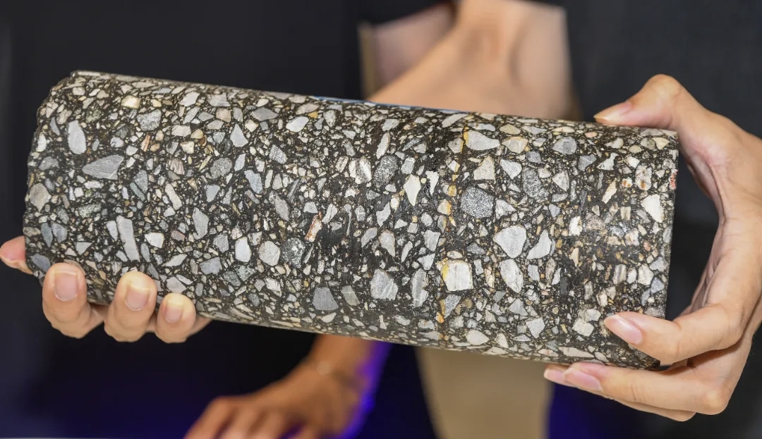 在海口复兴城国际数字港的海南大学科技园展厅,全比例中温再生沥青混合料展品亮相,展现了园区在绿色交通材料领域的创新成果。康登淋 摄