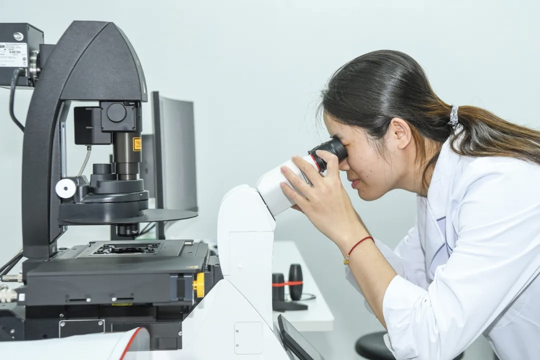 工作人员在海南大学新药筛选及评价平台的双光子共聚焦显微镜室开展实验。康登淋 摄