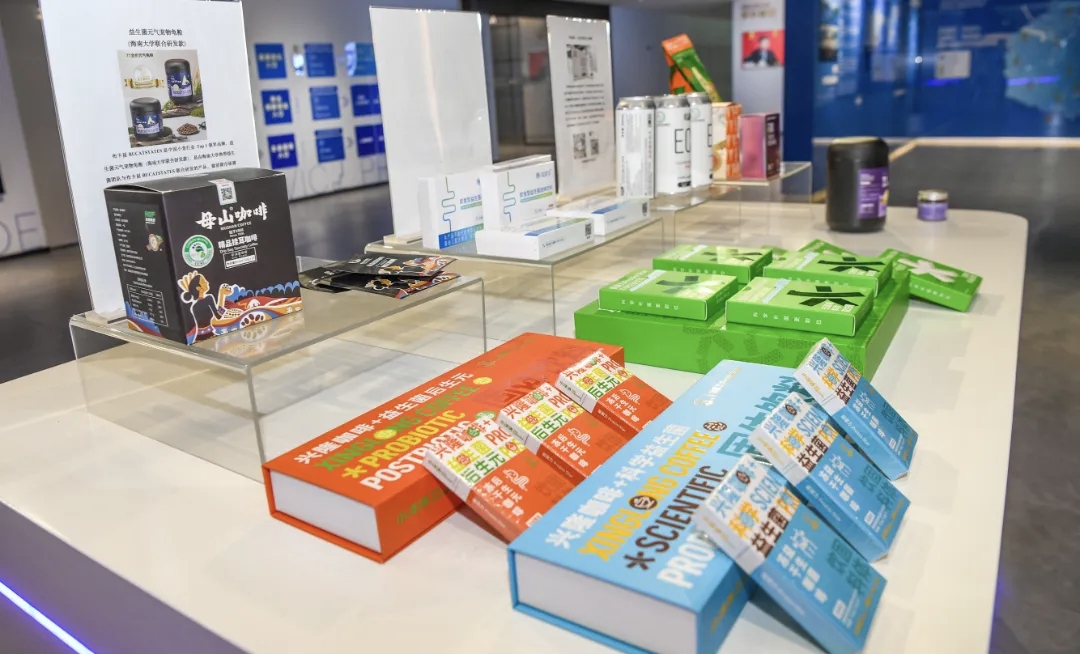 位于海口复兴城国际数字港的海南大学科技园展厅里摆放的科研成果展品。康登淋 摄