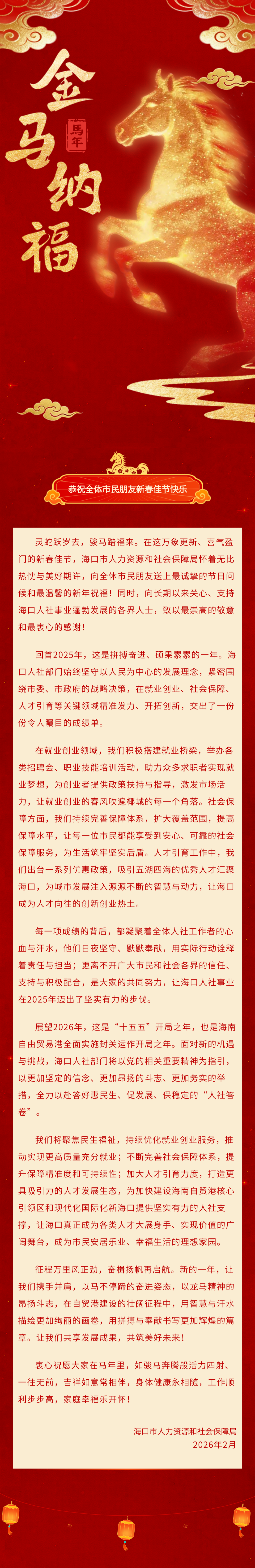 海口市人力资源和社会保障局恭祝全体市民朋友新春佳节快乐